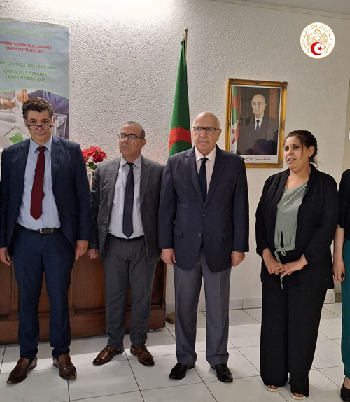 20.08.2024 - L’Ambassade d’Algerie à Berne a célébré, le 20 août 2024 , l’anniversaire historique du 20 août 1955. À cette occasion, les membres de l’Ambassade et de la communauté algérienne présents ont écouté l’hymne national, suivi d’une minute de silence à la mémoire des martyrs de la Revolution et de la Fatiha.