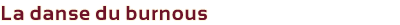 Le burnous est un habit traditionnel qui incarne la virilité et l’attachement aux traditions. Cette danse a pour objet principal de mettre en valeur cet habit.